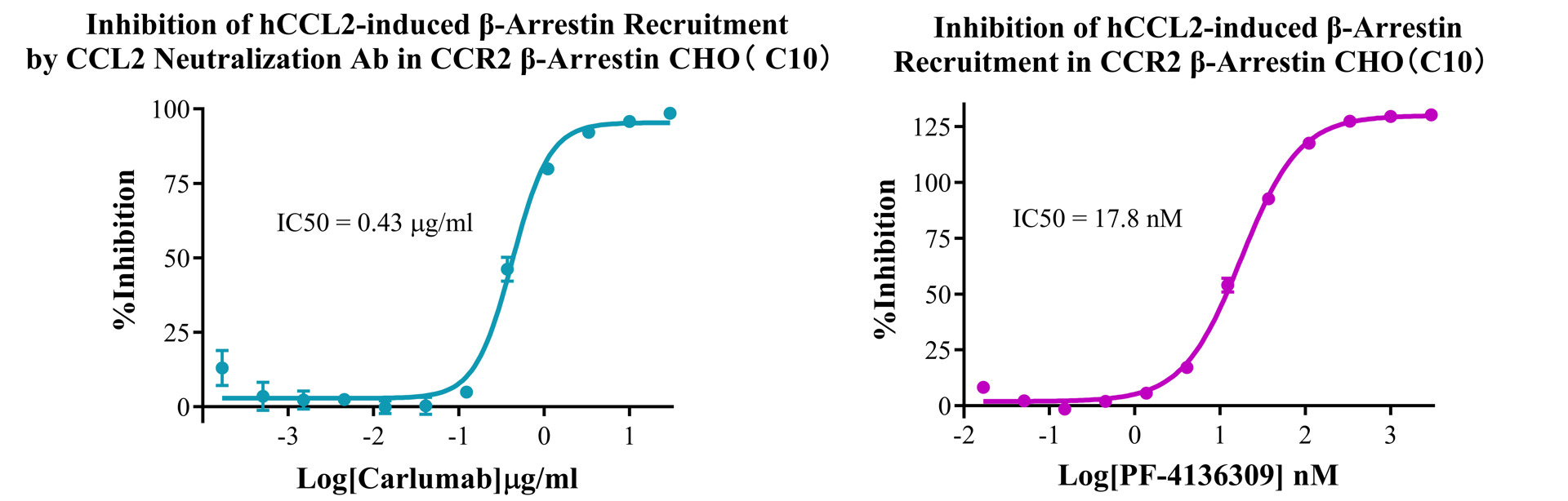 Figure 3.Inhibition of hCCL2-induced β-Arrestin Recruitment By CCL2 Neutralization Ab in CCR2 β-Arrestin CHO-K1(C10). Inhibition of hCCL2-induced β-Arrestin Recruitment in CCR2 β-Arrestin CHO-K1(C10).