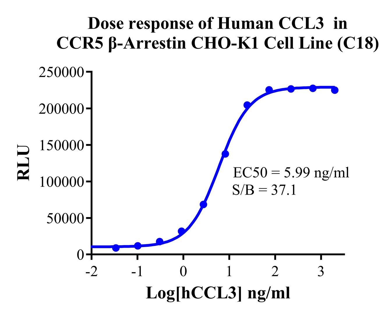 Figure 2. Dose response of Human CCL3 in CCR5 β-Arrestin CHO-K1 Cell Line (C18).