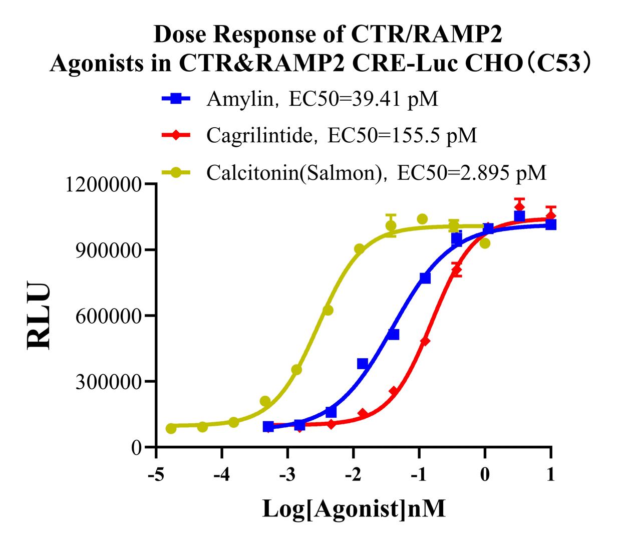 Figure 2.Dose Reponse of CTR/RAMP2 Agonists in CTR&RAMP2 CRE-Luc CHO-K1(C53).