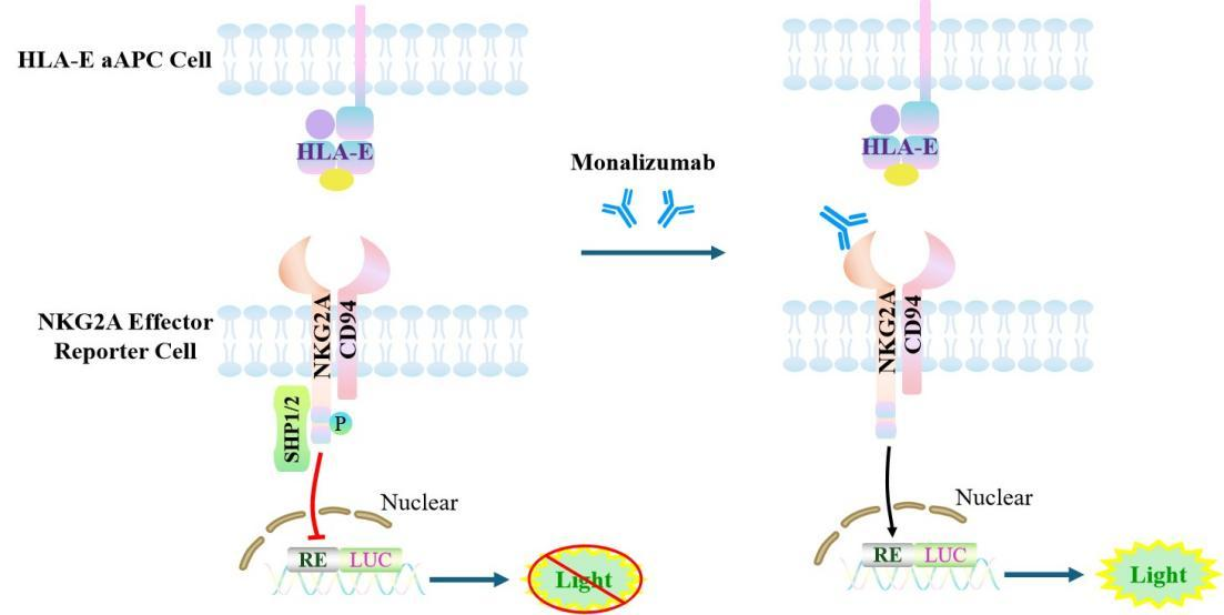 The CHO-K1 Human HLA-E aAPC Cell Model—effectively simulates the signal transduction process of NKG2A &HLA-E *in vivo*. The underlying principle is illustrated in the figure below.