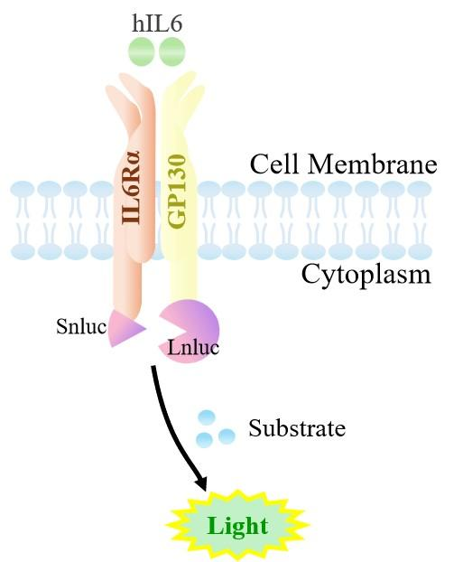 The CHO-K1 Human IL6RA&IL6ST Dimerization Cell Model—effectively simulates the signal transduction process of IL6 *in vivo*. The underlying principle is illustrated in the figure below.