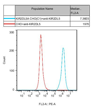 CHO cell line expressing full length human KIR2DL5A. Expression is confirmed by flow cytometry.