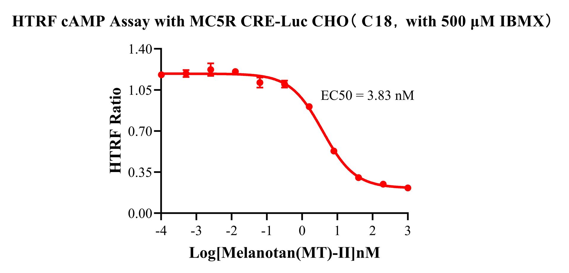 Figure 2. HTRF cAMP Assay with MC5R CRE-Luc CHO(C18, with 500 μM IBMX).