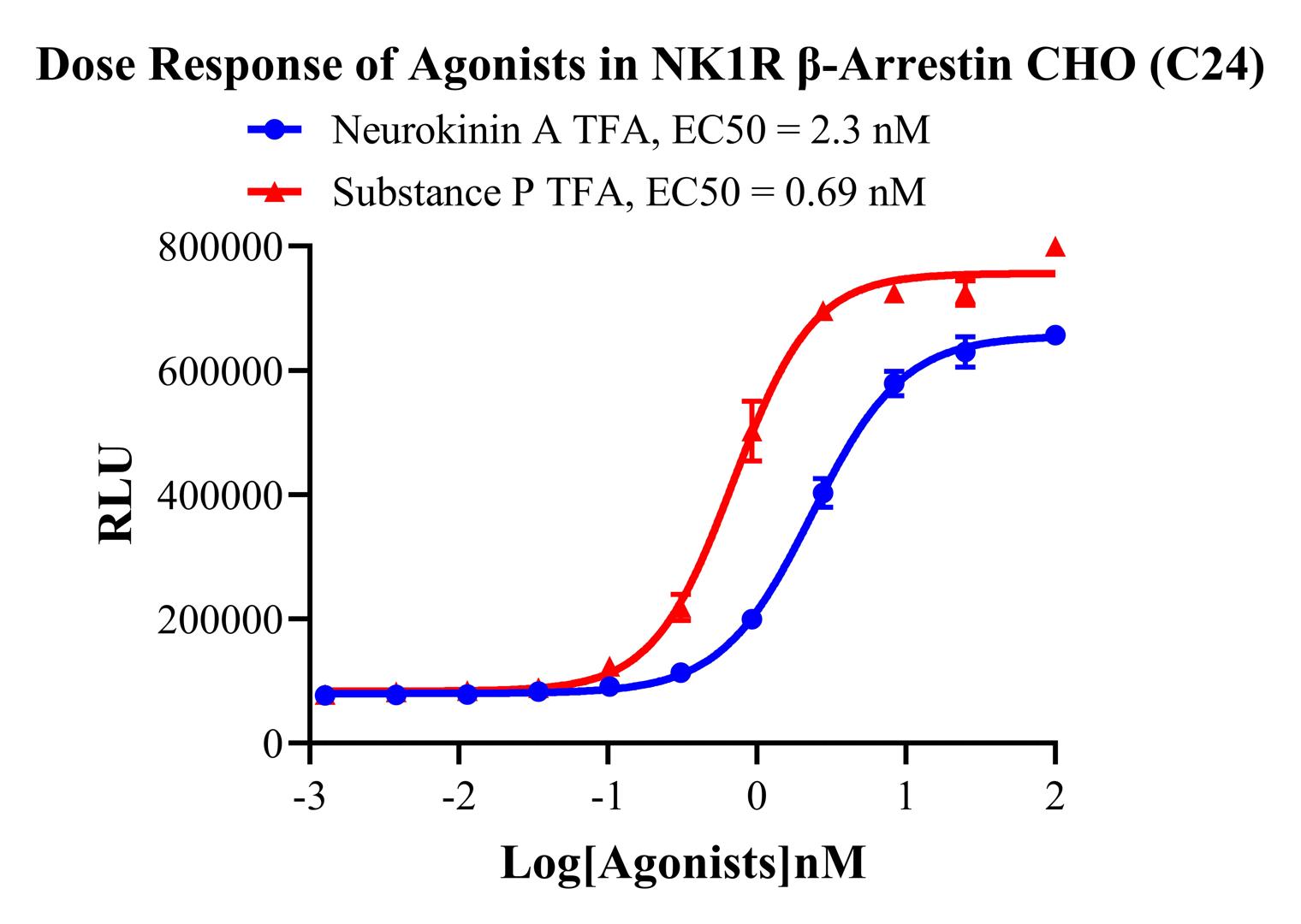 Figure 2. Dose Response of Agonists in NK1R β-Arrestin CHO-K1 (C24).