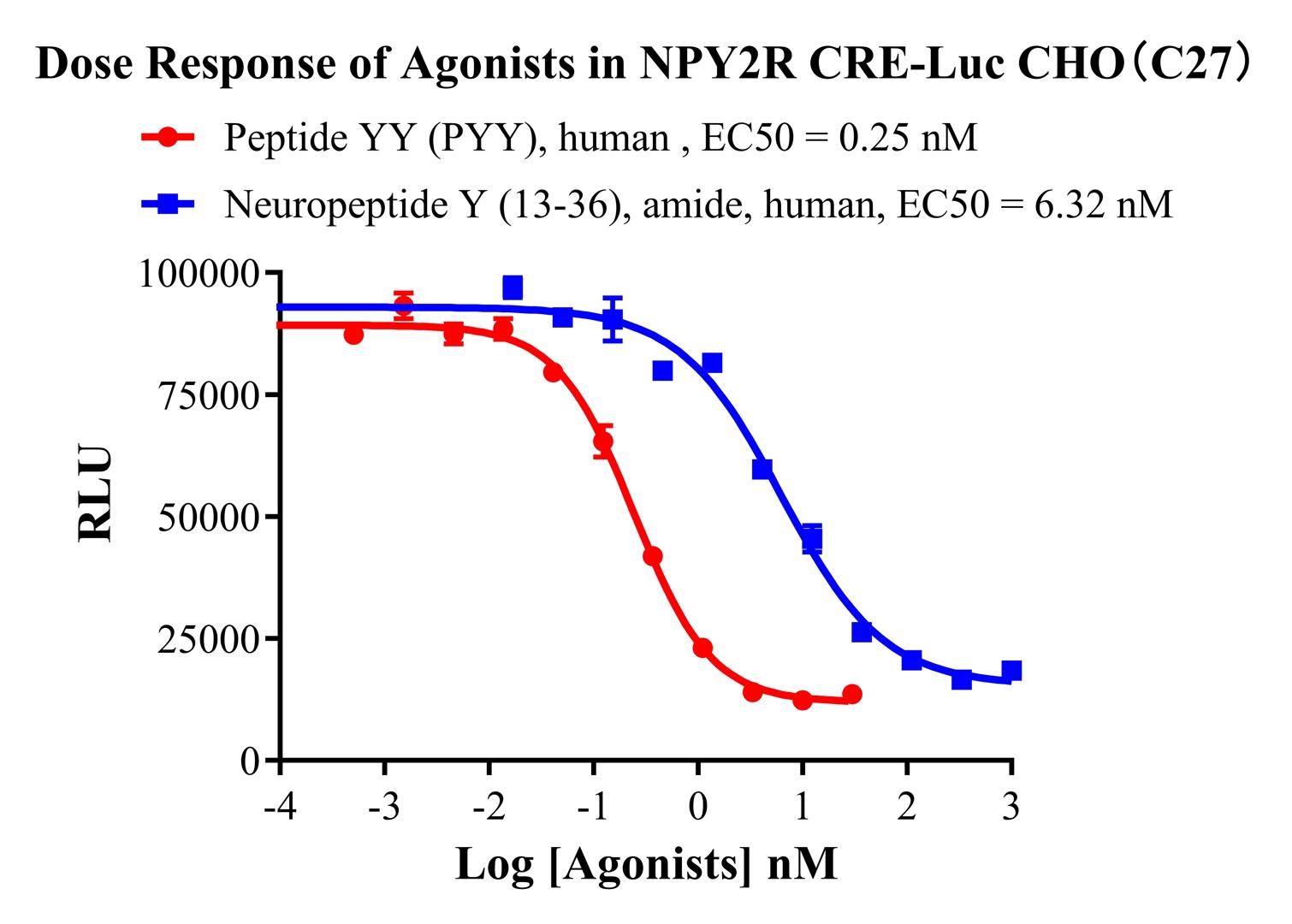 Figure 2. Dose Response of Agonists in NPY2R CRE-Luc CHO-K1(C27).