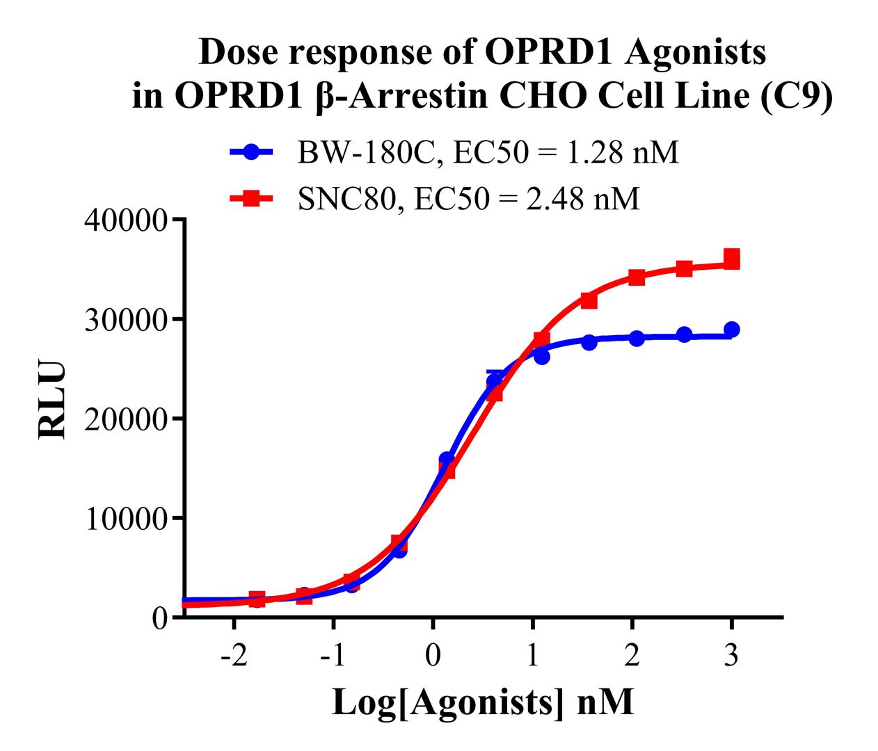 Figure 2. Dose response of OPRD1 Agonists in OPRD1 β-Arrestin CHO-K1 Cell Line (C9).