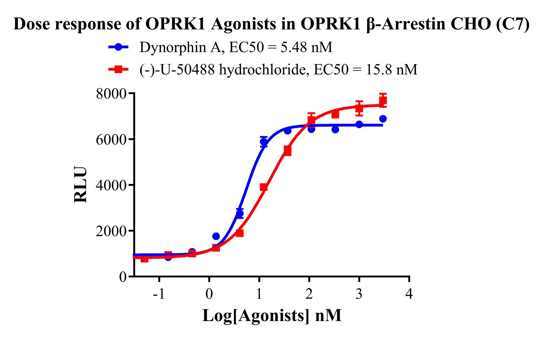 Figure 2. Dose response of OPRK1 Agonists in OPRK1 β-Arrestin CHO-K1(C7).