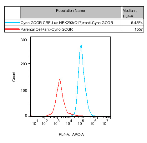 Figure 1. Recombinant Cyno GCGR CRE-Luc HEK293 stably expressing Cyno GCGR.