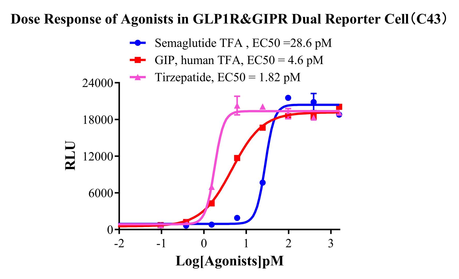 Figure 2. Dose response of Agonists in GLP1R&GIPR Dual Reporter Cell(C43).
