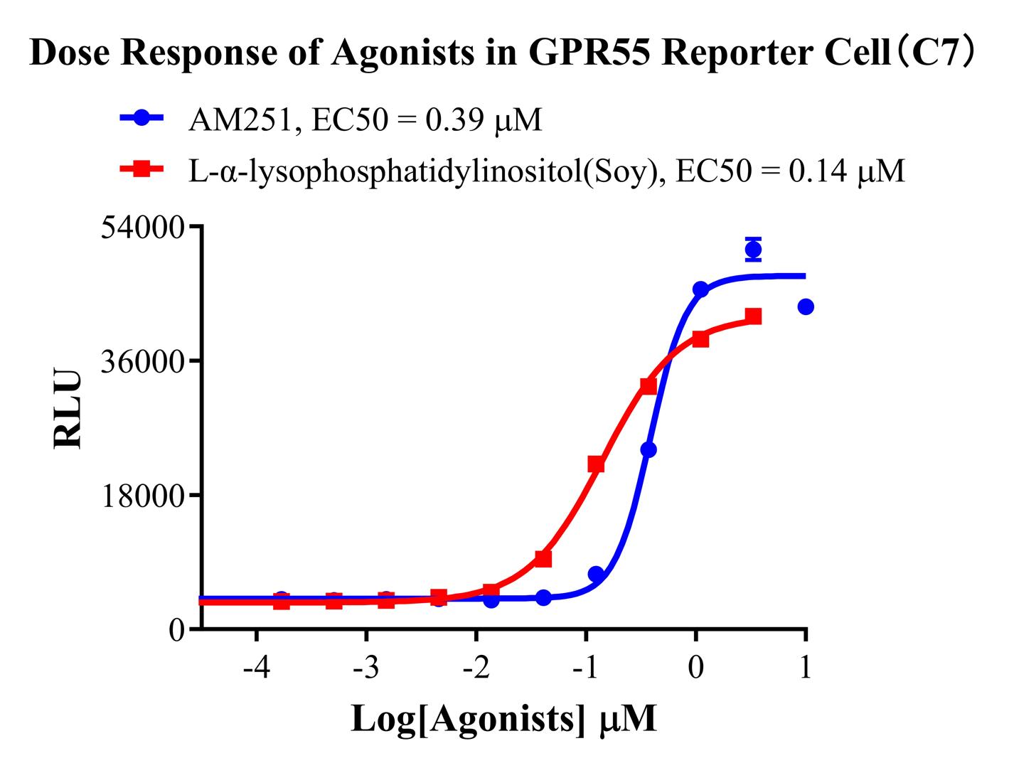 Figure 1. Dose Response of Agonists in GPR55 Reporter Cell(C7).