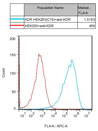 HEK293 cell line expressing full length Human KDR.Expression is confirmed by flow cytometry.