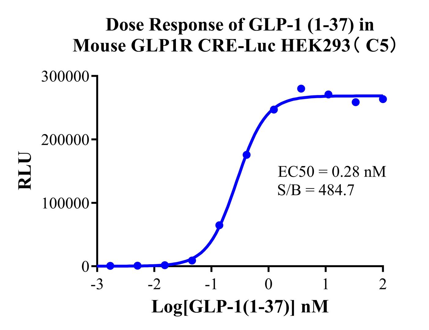 Figure 1. Dose response of GLP-1 (1-37) in Mouse GLP1R CRE-Luc HEK293 (C5).