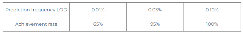 The error range of 0.05% is ±50%, which is 0.025-0.075%, so we choose 3 points and explore LODs of 0.010%, 0.050%, and 0.100%, respectively, requiring 95% detection.